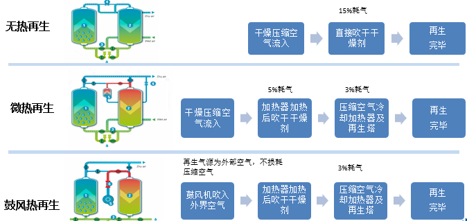 无热再生 l 压缩空气直接吹干所需的气耗折合电费为20万元