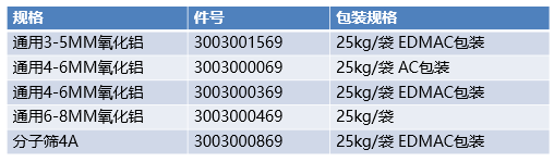 耗材使用 l 氧化铝使用量:1立方23-25kg l 氧化铝和分子筛混合使用时,分子筛不要超过1/3 |